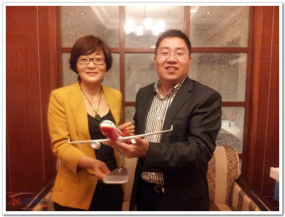 黄彬代表学院向中广核毕业生招聘工作组赠送飞机模型以示谢意。