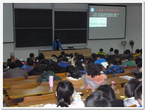 本次月讲评分为四个部分。首先,吴科颖以“有梦就要说出来”为主题向13级学生再次宣讲了校团委的圆梦行动,旨在让学生珍惜机会,提出自己切实可行的有意义的心愿,学校与学院会争取为同学们圆梦;接着,权璐以当下热播韩剧《来自星星的你》中女主人公的扮演者全智贤12年前与12年后先后征服地球人和外星人的事例引出来自材料学院的同学们一年前征服了南航,一年后拿什么征服未来的思考,并解析上学期期末成绩,通过与12级和南医学生成绩对比的数据分析,让学生从思想上意识到学习的重要性,提升学习主动性。通过分享身边的故事,让学生们调整状态,永不言弃。通过新闻漫谈,引导学生们关心时事,关注“两会”,做到既读“圣贤书”也闻“窗外事”。然后,权璐对学生素质能力培养方案进行了更加深层次的诠释,以嫦娥三号总工程师孙泽州的事例诠释表达能力的重要性,鼓励学生在大学里积极锻炼自己,努力向着“高素质公民和未来开拓者”的目标奋斗。最后,以3月7日女生节为契机,权璐呼吁男生关心女生,帮助女生。由13级团总支牵头,各班男生配合制作以女生照片为主题的明信片作为女生节礼物。并让女生将自己的心愿便利贴贴在许愿墙上,由男生完成。