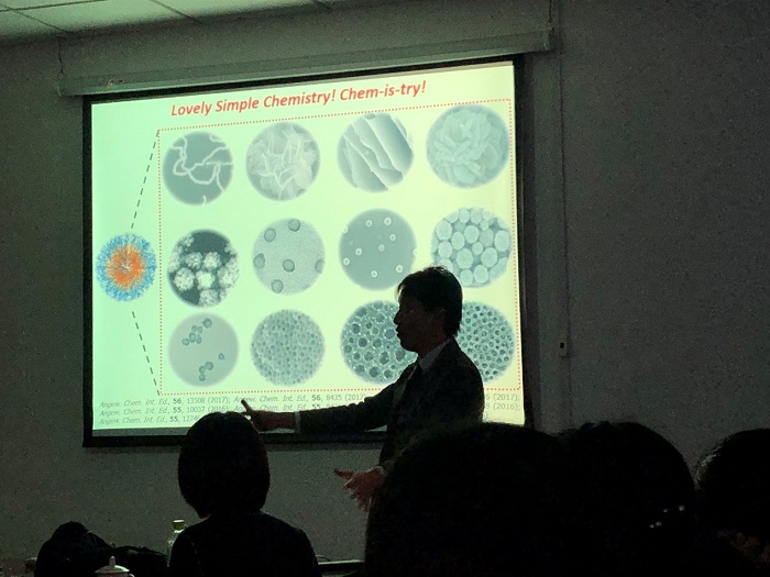 Yusuke Yamauchi教授激情洋溢的演讲引发了大家对于聚合物胶束组装法合成的多孔材料有了更深刻的思考和兴趣。报告结束后,Yusuke Yamauchi教授同与会的各位老师和同学进行了积极的讨论交流。