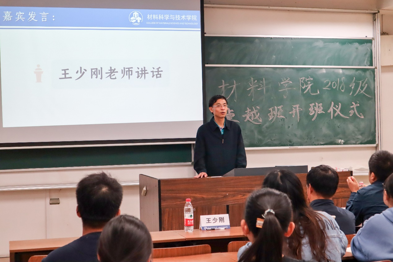 随后,王少刚就如何突出“卓越”的特色对同学们提出了详细的建议。他提到,卓越班之所以卓越,“第一,同学们要保证学习的质量,做好班级建设,让勤奋学习成为一种班级风气;第二,要好好利用卓越班比较多的实习机会,开拓自己的视野,提升自己的能力;第三,要提高科创参与度,锻炼自己动手和思考的能力;第四,要注重维护班级荣誉,增强团队协作能力。”