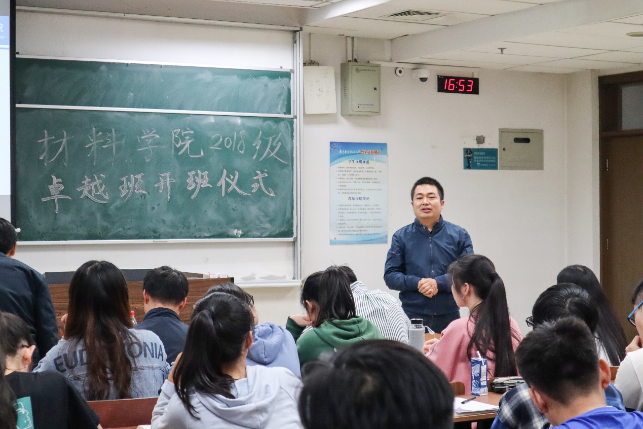 为增强学生对卓越班培养计划的了解,提升学生的专业认同感,进一步发挥专业老师在学生成长成才过程中的引导作用,jojo漫画 “名师有约”第十期暨2018级卓越班开班仪式于10月14日下午成功召开。jojo漫画 院长张校刚,2018级卓越班班主任王少刚,材料加工工程系党支部副书记周金堂,2018级辅导员蒋俊超,卓越班朋辈导师及2018级卓越班全体同学参与了本次活动。