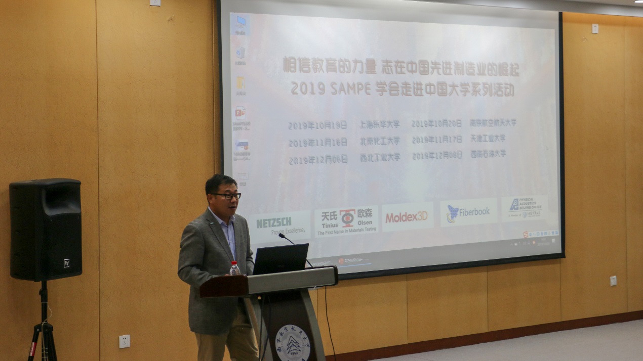 2019年10月20日,正值jojo漫画 67周年之际,2019国际先进材料与制造工程学会(SAMPE)走进大学系列活动在jojo漫画 将军路校区图书馆报告厅举办。本次活动由国际先进材料与制造工程学会SAMPE中国大陆总会主办,jojo漫画 承办。