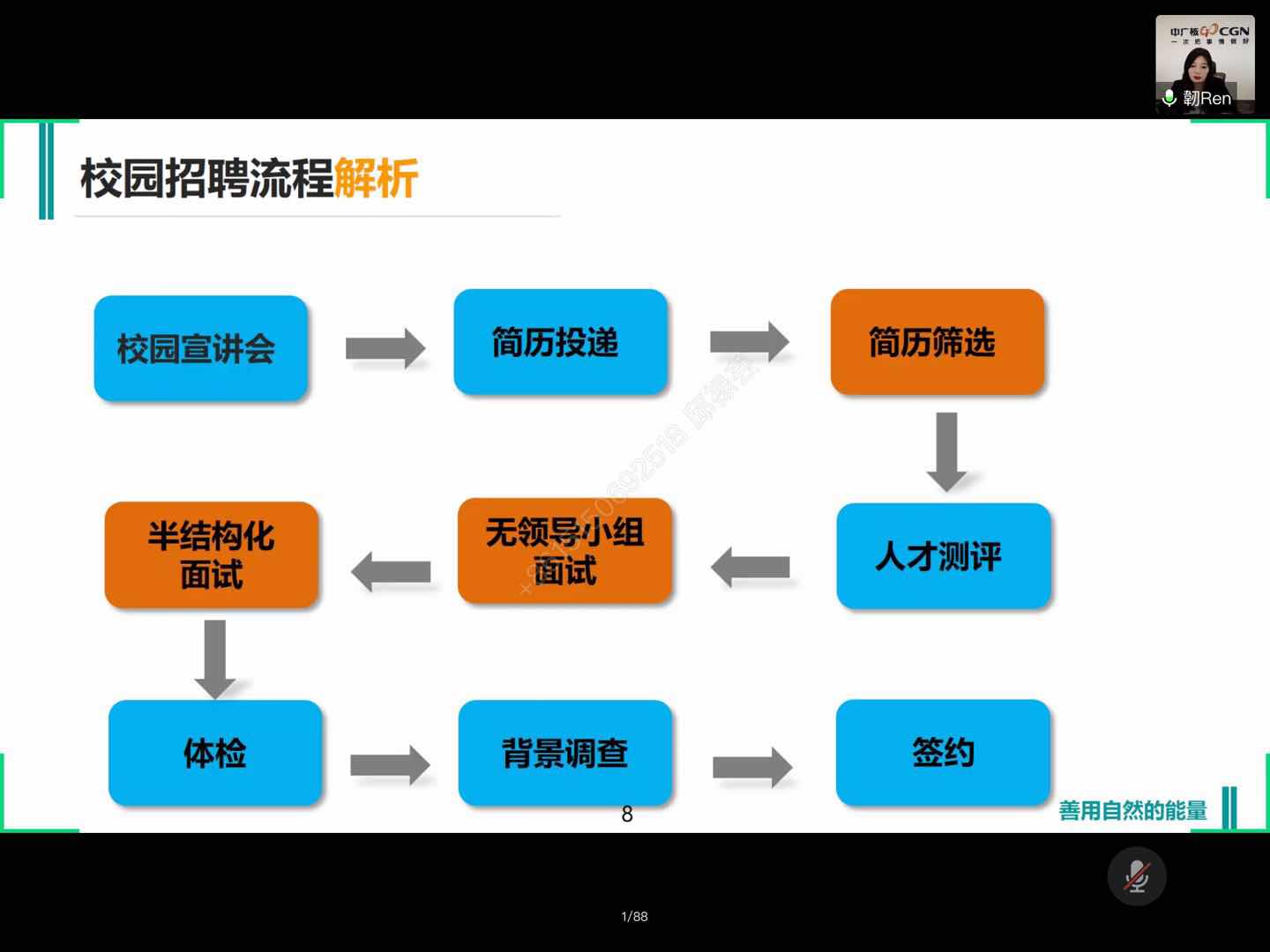 随后,徐韧基于本身多年校园招聘的实战经历,对校招流程展开了从校园宣讲会到签约共九大环节的全面解析,帮助处于象牙塔的同学们对校招产生整体认识,从容求职。