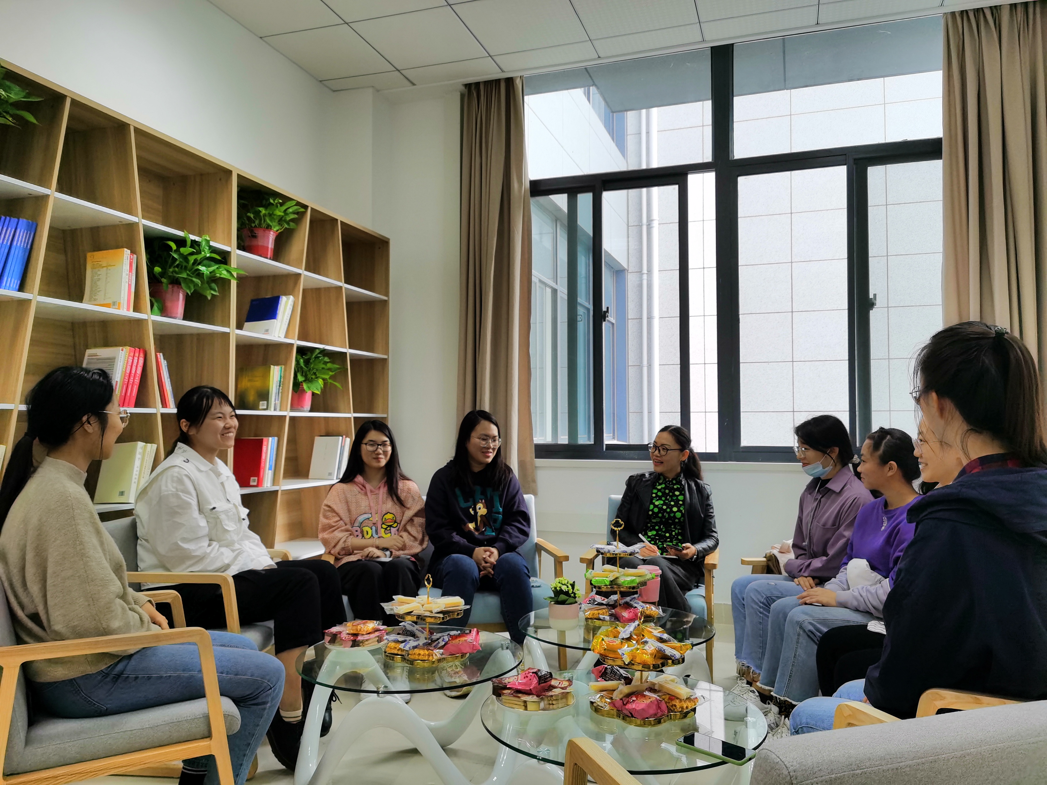 园丁心血化春雨,桃李芳香满神州。2020年10月26日上午,jojo漫画 B315会议室迎来了不一样的面貌,氤氲的热茶,香甜的点心,充满诗意和花香的房间,党员教师结对宿舍下午茶交流会在这里如期开展。此次活动邀请到了材料加工工程系支部书记潘蕾老师与怡园18栋501-03、501-04两间寝室的8名同学进行了深入的交谈,交流会在一派温馨的氛围中顺利进行。