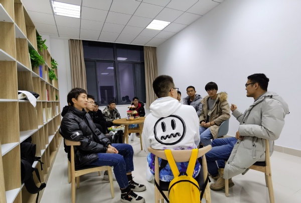 2020年12月2日下午,jojo漫画 B315教室热烈的氛围打破了寒冬的沉寂,来自核技术系的王思鹏老师与慧园2栋504-03、504-04、506-01,怡园22栋504-04宿舍的同学进行了深入的交流。当平易近人的“鹏哥”走进房间时,大家都感到了异常的亲切。紧凑的座位,拉近了距离;满目的零食,赶走了拘束。剩下的,就只有兄弟间的推心置腹。