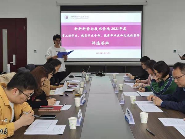 江苏省省级三好学生、优秀学生干部等省级荣誉院级公开答辩评审,是学院全面落实立德树人根本任务,培养德智体美劳全面发展的社会主义建设者和接班人,以此来树立标杆形成典型示范,进一步推动学生爱国励志、求真励行的重要举措。学院依据学校要求,本着公平、公正、公开的原则,切实做到坚持标准、保证质量、全面衡量,经前期学生自主申报、年级评优评奖工作组推荐等环节后,此次答辩评审会包含本、研三好学生、优秀学生干部等个人奖项4项,共12人参与了此次公开答辩评审会的展示。他们有勤奋刻苦、笃志励行的学习标兵;有学以致用、勇攀高峰的科创能手;也有任劳任怨、助人为乐的班级干部,通过公开答辩评审会,他们充分彰显了“材子材女”们的风采。
