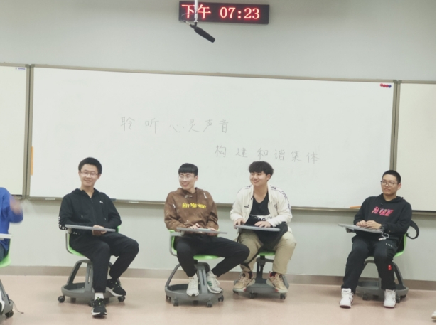 在向同学们普及心理知识的同时,邀请大家做些暖场小游戏,拉近互相之间的距离;鼓励大家畅所欲言,说出自己的真心话;观看心理健康小短片,感受美好与温情……通过多种方式相结合,在轻松欢快的氛围下,也涵盖学生常见心理问题、心理健康判断标准、心理问题解决方法、人生价值取向导航等多个方面的专业知识,103和105的活动让大家卸下负担,收获颇多。