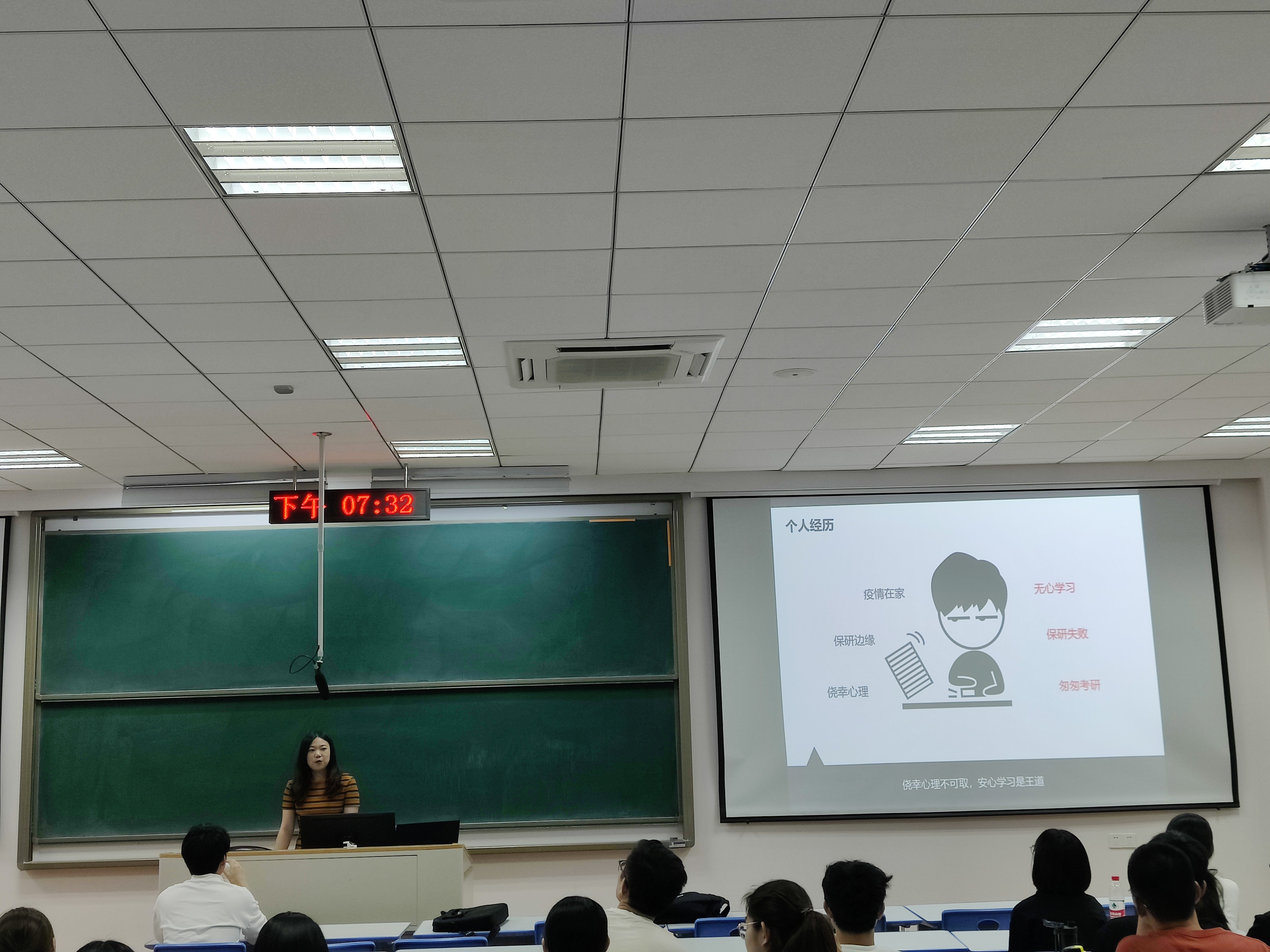 本次三位学长学姐的分享让同学们对考研有了一个更加全面的认识,解答了同学们对于考研的疑问,引导学生正确的学习方向,促进考研经验在年级间的传递。