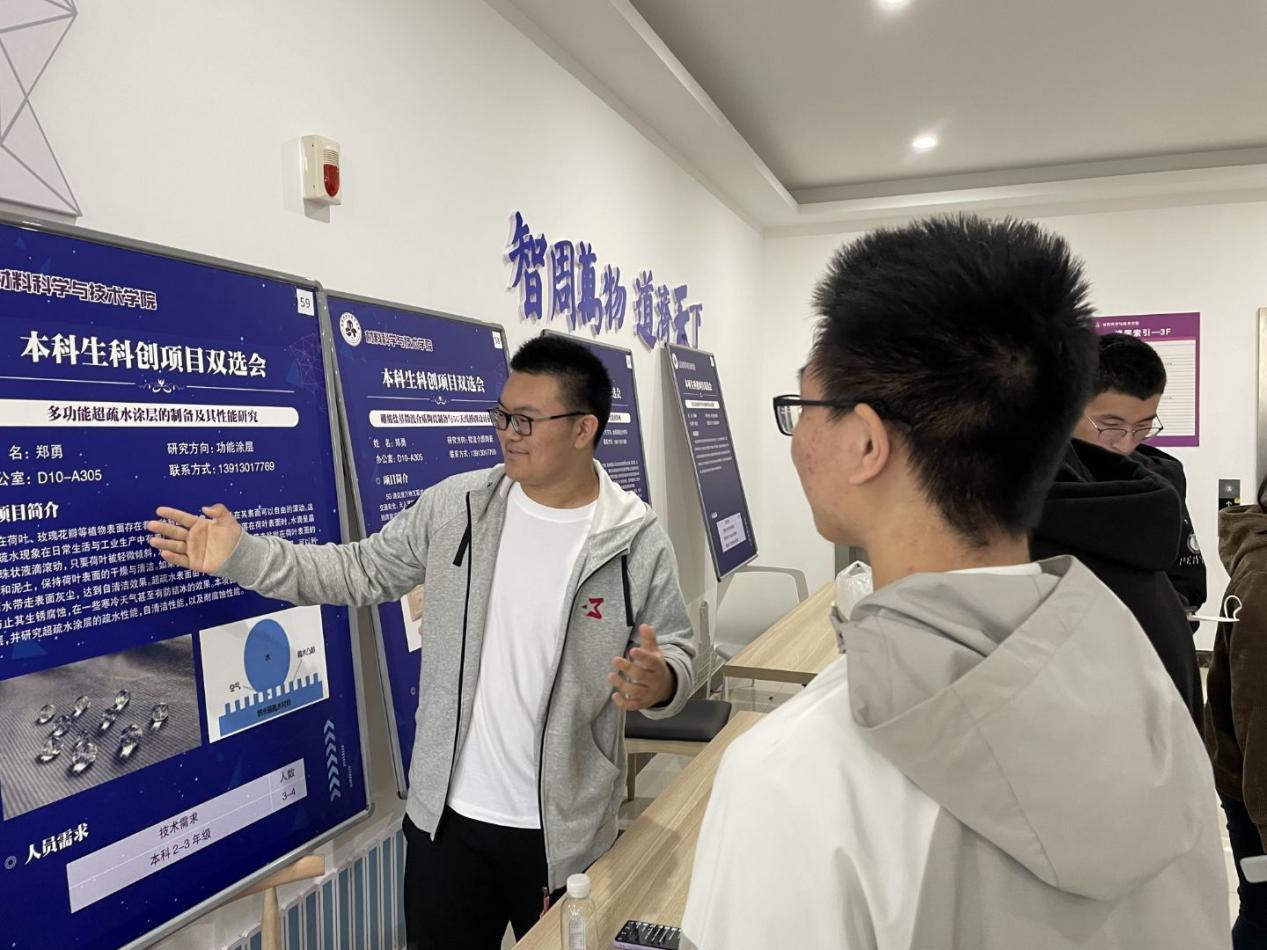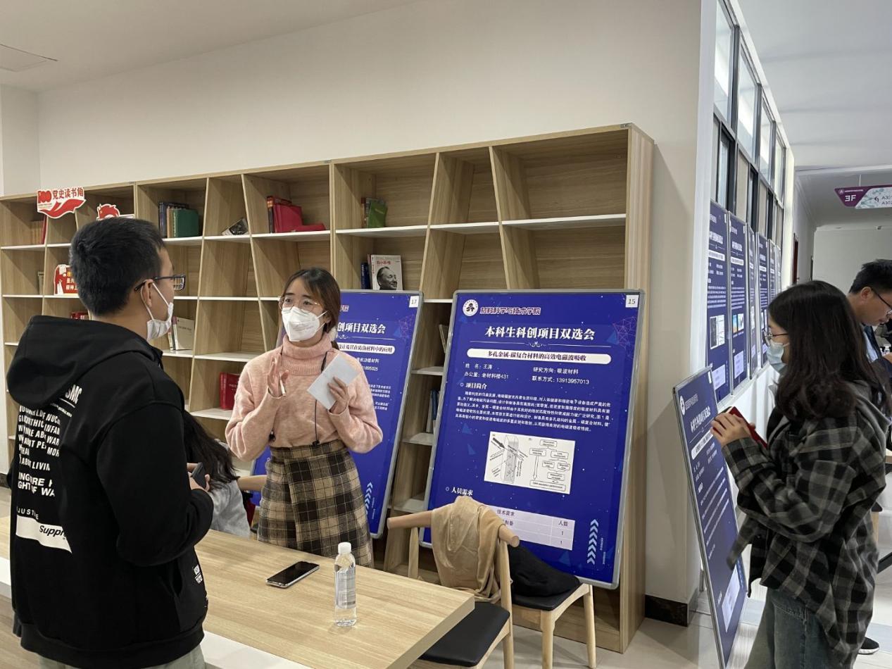 次日下午,在jojo漫画 三楼开展了线下科创项目双选会。前期面向全院教师共征集本科生创新项目59项,通过展板陈列的方式供学生浏览与选择,同时有项目负责人为感兴趣的或有疑惑的同学答疑,现场登记报名。本次科创项目申报采取双向选择的形式,相比传统的同学四处找老师,了解项目或是由表格报名项目的形式更加高效,同学们也能了解更多学院老师的研究方向以及科创项目的前沿信息与分类。