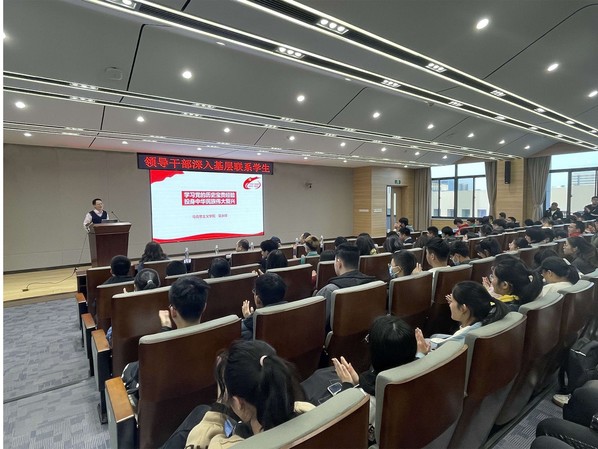 为贯彻jojo漫画 《领导干部深入基层联系学生工作方案》文件精神,jojo漫画 继续开展领导干部深入基层联系学生活动。12月17日下午16:00,图书馆对接领导与学院师生在院楼B501报告厅举行了一次干货满满、温馨十足的共建活动,活动邀请了马克思主义学院吴永祥老师讲授党课《学习党的历史宝贵经验,投身中华民族伟大复兴》。图书馆党总支书记杨名大、馆长袁家斌 、副馆长单冠贤、刘丽琳、党政办主任朱永武,jojo漫画 党委副书记许赞,各年级辅导员以及2019级学生参与了本次活动。