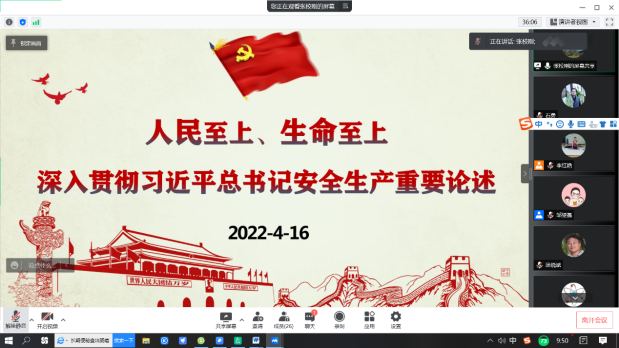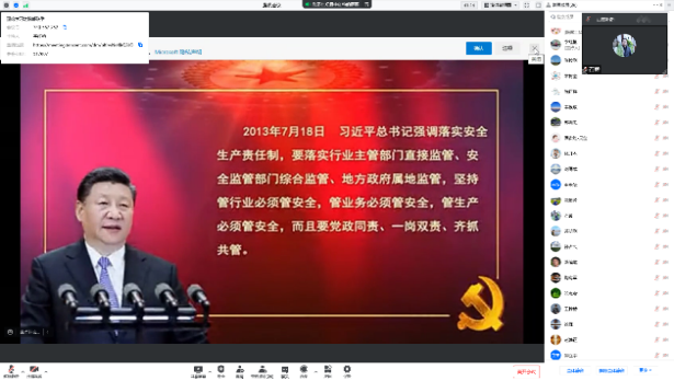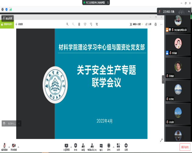 国资处处长、党支部书记孙占久领学了3月31日中央政治局常委会、全国安全生产电视电话会议精神,传达了4月13日工信部部属单位、部属高校安全生产视频会议精神。在交流发言中强调了要进一步提高站位,在思想和认识上把安全放在更加重要的位置。要深刻汲取各类事故教训,不断提升实验室安全水平,增强忧患意识、底线思维,提高统筹发展和安全的能力。按照中央和上级要求,切实扛起安全生产政治责任,落实安全发展年度重点工作任务,明晰部门监管责任、学院主体责任、老师、实验室负责人的直接责任,落实全员安全责任。要认真做好风险识别评估,既要精准识别出实验室内动态风险也要识别出项目进行过程中的动态风险。要有针对性的做好实验室的安全保障和防范措施,要做好实验室安全培训,特别是实验室和课题组层面有针对性的安全培训要做到位。要扎实推进学院旧楼改造等重点工作,着力提升本质安全水平。在安全管理方面学校部门和学院要进一步联动,密切配合,无缝对接。开展安全管理要理直气壮,标本兼治,从严从实,责任到人,守住底线。