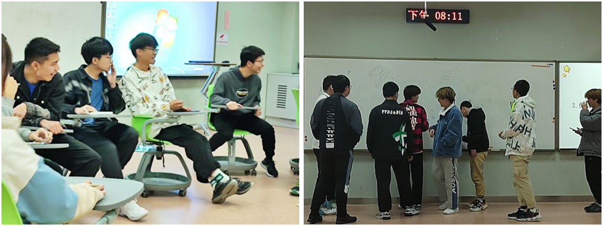 各班级在操场、活动室等不同场所,利用解圈圈、击鼓传花、大风吹等多种趣味小游戏破冰开场,开始了本次活动。欢乐、充满笑声的活动现场将活动推向高潮,全班同学积极参与,释放了学习与疫情带来的压力,提高了班级同学团结协作的能力。
