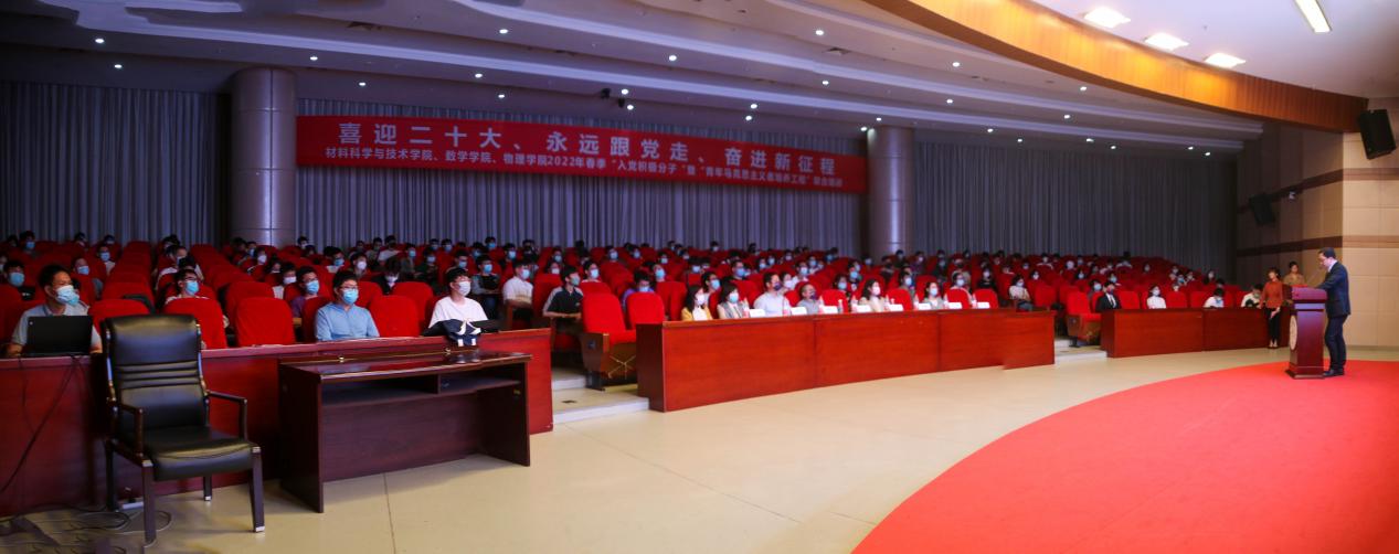 5月9日晚,jojo漫画 、数学学院、物理学院联合举办的“信仰公开课”暨“青年马克思主义者培养工程”培训在将军路校区一号楼四楼报告厅顺利举行。马克思主义学院教授平旭、jojo漫画 党委书记石勇、物理学院党委书记陈修文、数学学院党委副书记周佼佼、jojo漫画 党委副书记庄晓舒、各学院组织员、团委书记、辅导员以及本期培训班全体学员参加了本次培训。培训由jojo漫画 团委书记徐萍主持。