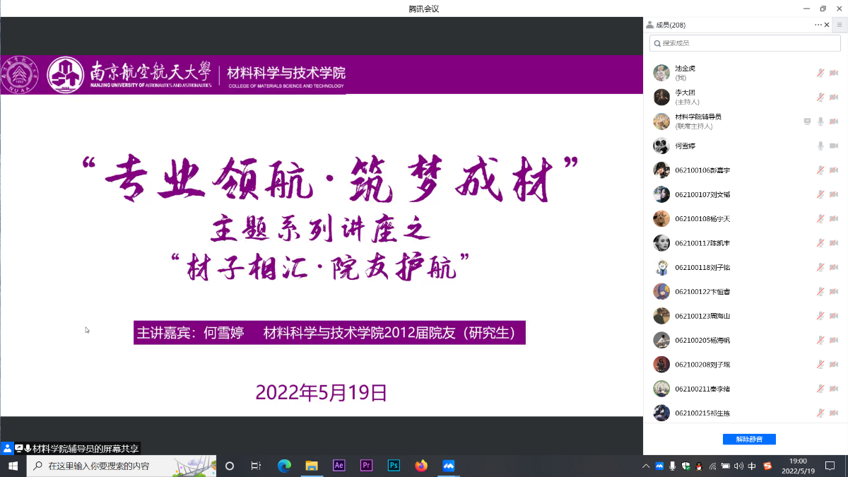 为帮助jojo漫画 学生进一步了解专业、认识专业、认同专业,2022年5月19日,“材子相汇·院友护航”专题线上讲座邀请2012届院友、上海飞机制造有限公司航空制造技术研究所高级主管研发工程师兼室主任何雪婷担任主讲人,研究生辅导员邱禄芸主持,学院本硕两百余名学生在线参加。