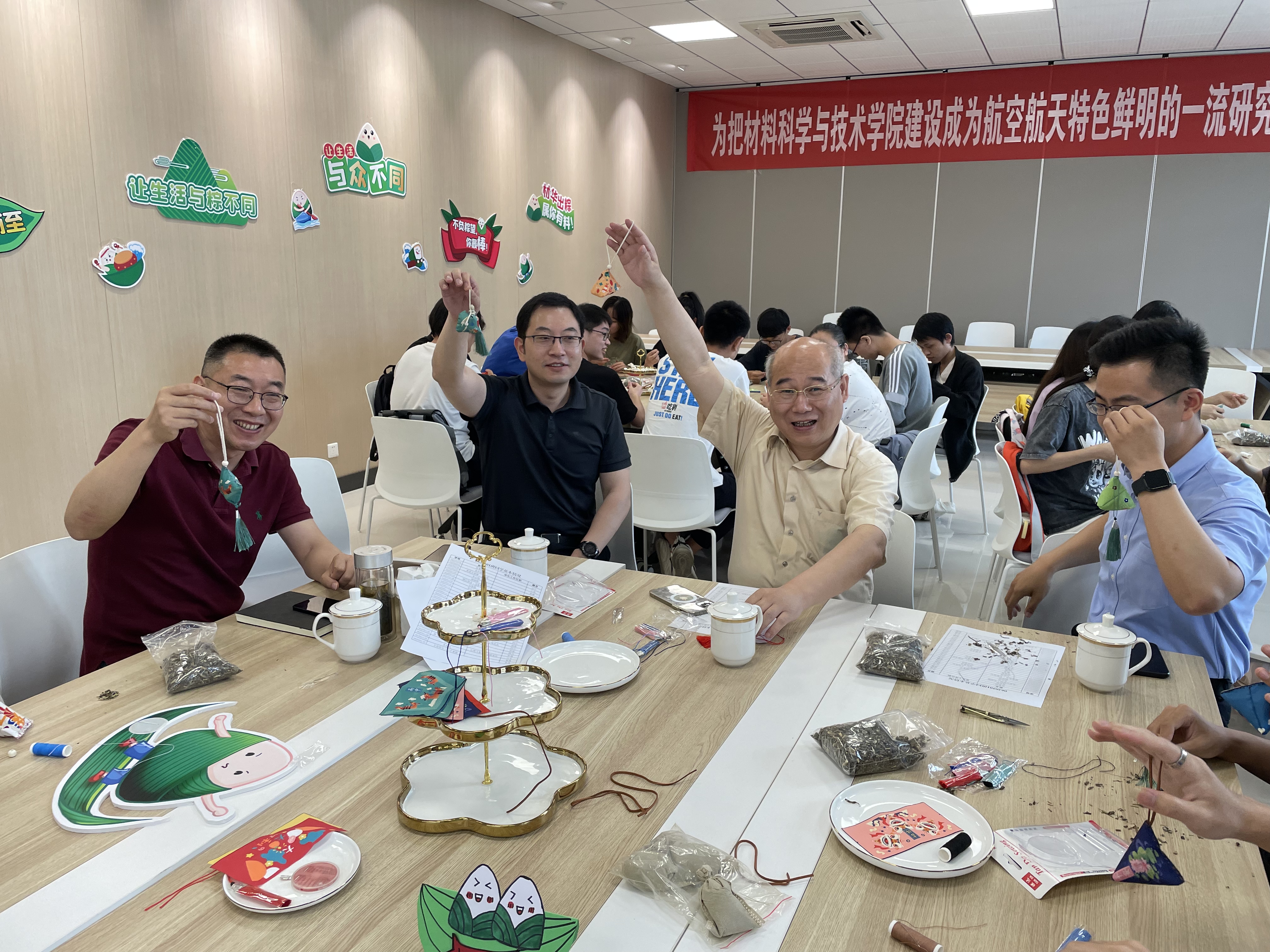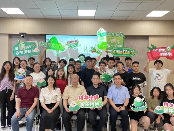 举办“‘材’华出‘粽’,情满端午”师生共迎端午活动,党委常委、副校长黄志球、院党委书记石勇、材料科学系教工党支部书记刘劲松、应用化学系系主任常焜以及0620501班全体同学参与本次活动,活动由院党委副书记庄晓舒主持。