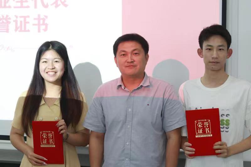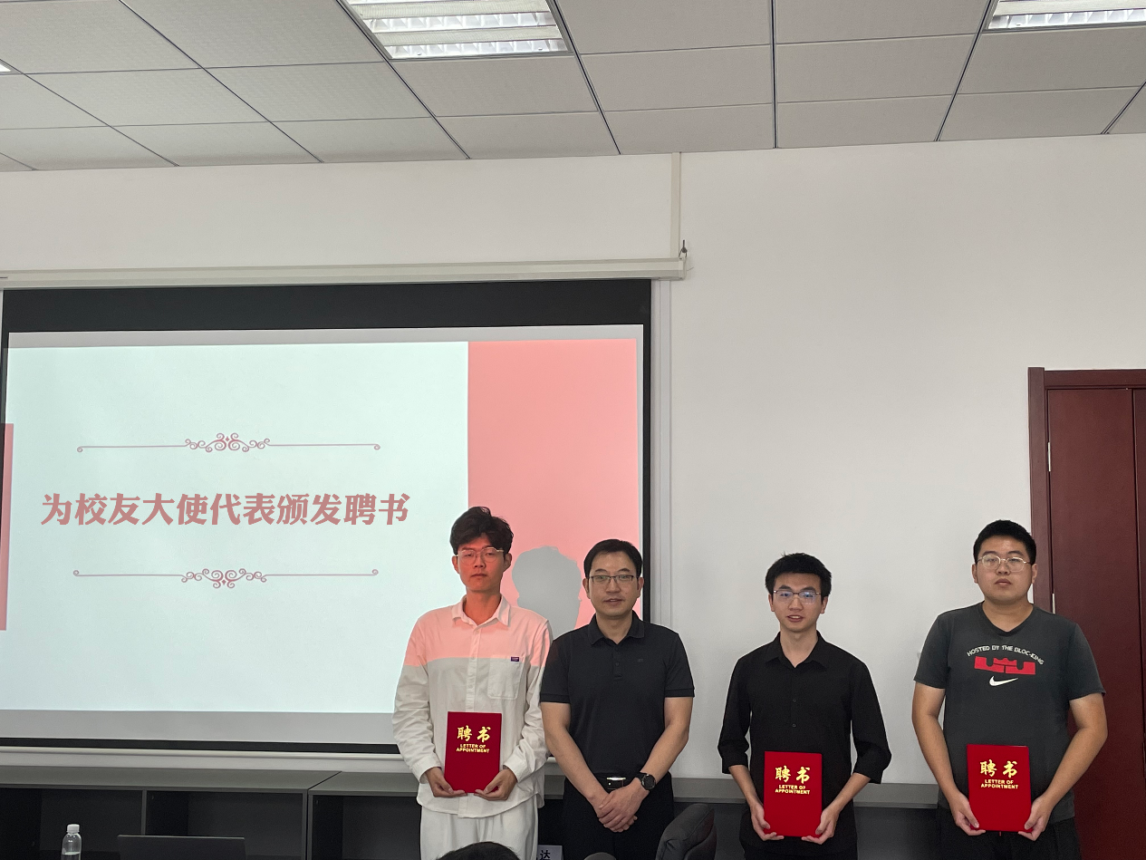 随后,石勇、陶海军分别为2022届优秀毕业生代表、“校友大使”代表颁发荣誉证书和聘书。