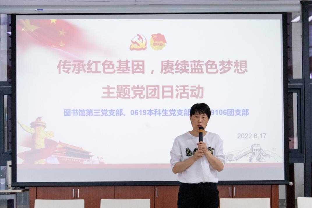 为深入学习习近平总书记重要讲话精神,传承南航精神,加强党建带团建机制,促进党团支部间交流与合作,6月17日,jojo漫画 0619党支部、0619106团支部联合图书馆第三党支部在将军路校区图书馆六楼读者活动中心开展“传承红色基因,赓续蓝色梦想”主题党团日活动。图书馆党总支书记周克印、馆长袁家斌、副馆长刘丽琳,jojo漫画 党委书记石勇、党委副书记庄晓舒、团委书记徐萍,以及辅导员代表、教师代表、研究生代表、各支部全体成员参加了本次活动,活动由图书馆第三党支部书记赵立芹主持。
