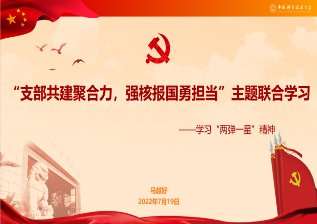 随后,两支部分别介绍支部建设情况。中科大核科学技术学院2020级研究生班党支部组织委员徐梦梦从管理经验、党史学习教育、党日活动等方面介绍支部建设成果与经验。jojo漫画 核技术应用与防护研究生党支部书记莫洪以“师生同行筑堡垒 红专并济创一流”为主题分享了支部建设中师生“共学”“共行”“共研”,构建师生党建共同体,形成具有鲜明学科特色党支部的心得体会。双方就组织生活开展、宣传,纵向党支部建设等进行交流。