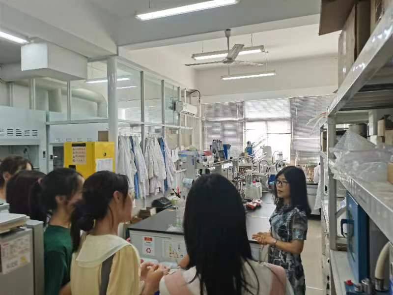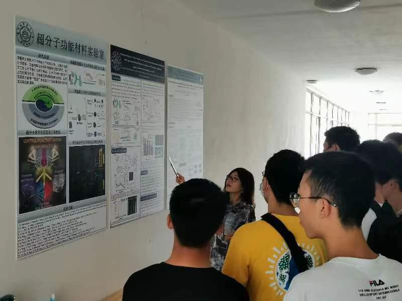 在胡晓玉教授的超分子功能材料实验室,同学们了解了胡教授目前的主要研究方向,对涉及超分子组装及有机功能材料方面充满了浓厚的兴趣。研究工作以分子设计合成为基础,以分子识别与超分子可控组装为手段,以有机功能材料构筑为导向,旨在实现系列新型“智能”有机超分子组装体系的可控构筑及其功能调控。