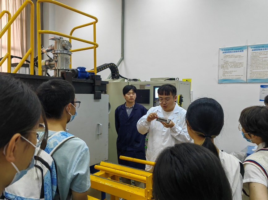 在张莎莎老师的先进结构材料及电子束快速成型实验室,通过老师耐心细致地讲解以及展示电子束快速成型技术实验仪器,同学们逐渐了解到该技术功率具有能量利用率高、可加工材料广泛等突出优势,电子束技术在同学们心中留下了深刻的印象。