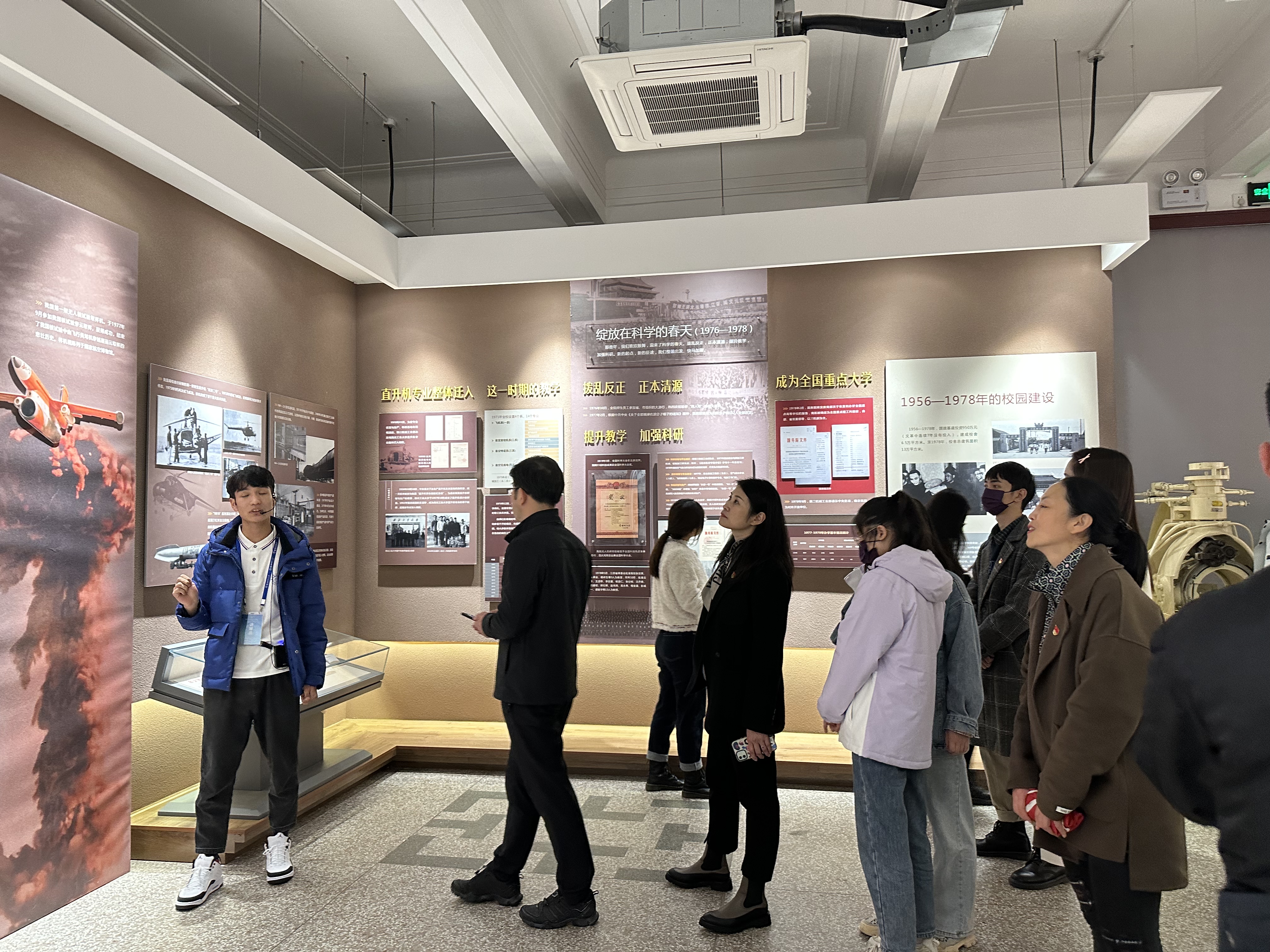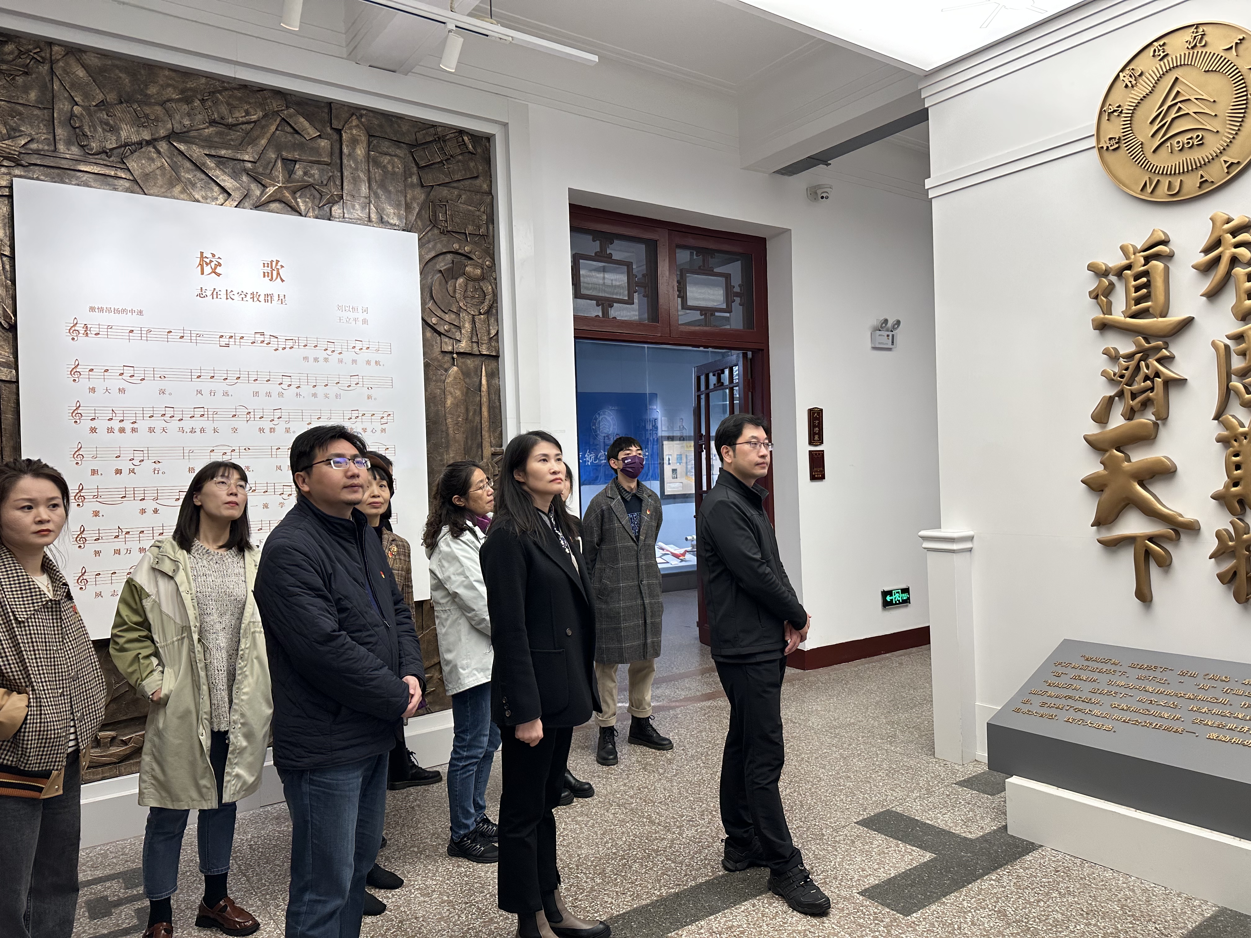 随后,师生们来到校史馆,馆内陈列鲜明而富有代表性,存放的文字、图片、实物等宝贵资料,是展现南航历史文化底蕴,激励新一代南航学子“效法羲和驭天马,志在长空牧群星”的精神家园。在讲解员的引导下,支部成员们认真参观了“发展历程”“人才培养”“科学研究”“党建引领”四个展室,重温和体会了南航建校之初的艰苦历程以及建校之后的快速发展。