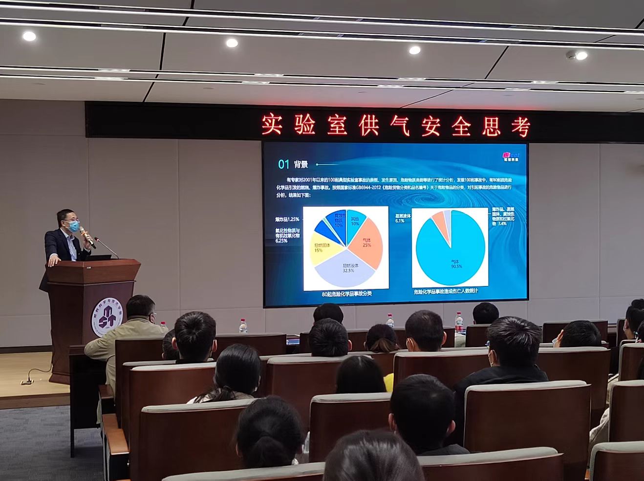 培训期间,师生结合自己实验室的情况,积极提问,对实验室内气瓶的常见问题进行现场的问答互动,邱璟副总经理逐一回答耐心指导,现场气氛热烈。