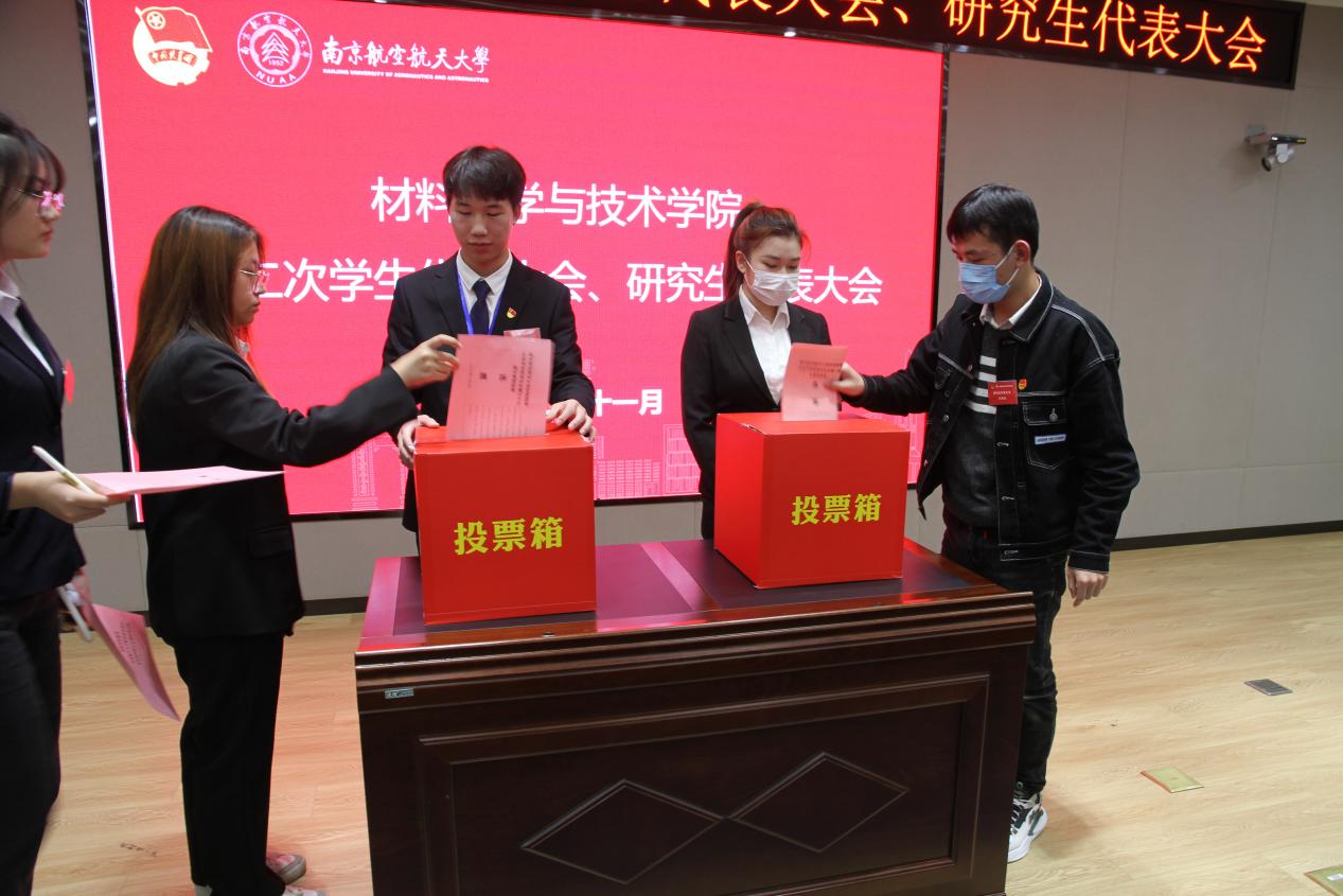 大会圆满完成各项既定任务,通过民主投票选举出戴冬睿等15名新一届学生委员会委员,张琨莱等3位学生会主席团成员;选举产生了冉瑾瑾等11名新一届研究生委员会委员,池金虎等3名研究生主席团成员。