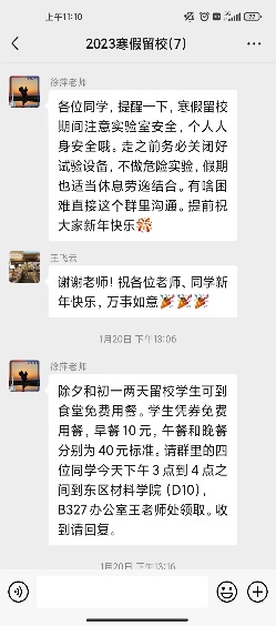 这个寒假,研究生辅导员建立留校学生群,关心、关注因特殊情况无法返乡学生的生活和科研情况,让同学们在学校也能感受到家的温暖。