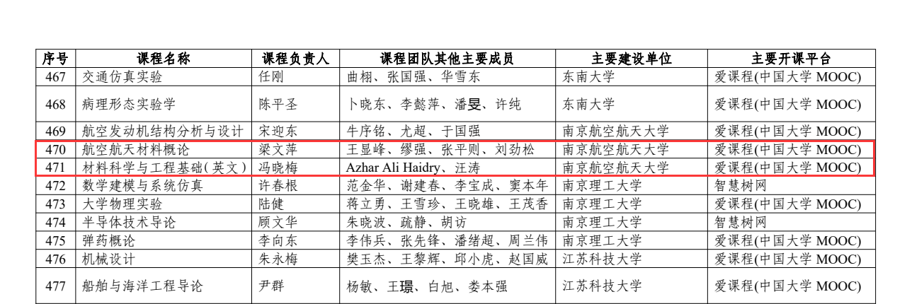 日前,教育部发布《关于第二批国家级一流本科课程认定结果的公示》,jojo漫画 有3门课程入选,分别是陶杰《材料科学基础》,梁文萍《航空航天材料概论》,冯晓梅《材料科学与工程基础(英文)》。