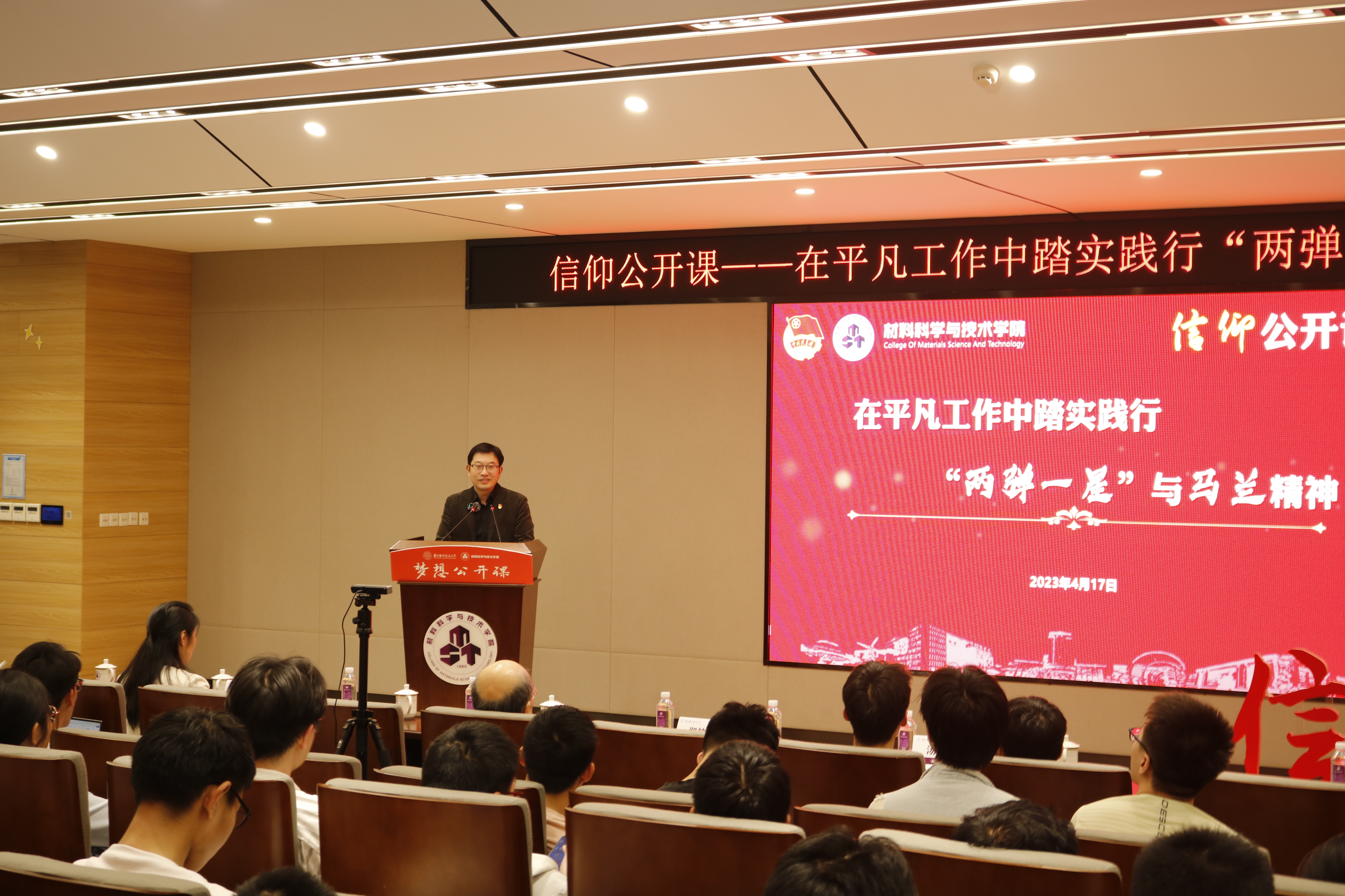 4月17日,由jojo漫画 团委主办、jojo漫画 团委承办的“在平凡工作中踏实践行‘两弹一星’与马兰精神”信仰公开课在将军路校区材料学院报告厅举行。本次信仰公开课邀请到了我国核与辐射防护领域资深专家、清华大学客座教授郑钧正主讲,院党委书记石勇、副书记庄晓舒、副院长汤晓斌、核科学与技术系老师及180余名学生现场参与,新疆和硕第二小学师生线上参加,公开课由石勇主持。