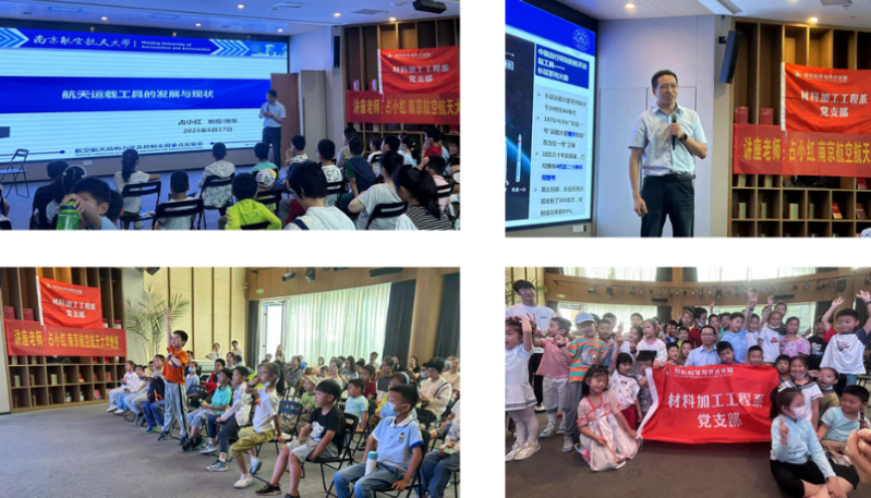为深入学习贯彻落实党的二十大精神和主题教育“学思想、强党性、重实践、建新功”的总要求,充分发挥党员奉献社会服务社会作用,材料加工工程系党支部依托学院专业特色,于6月份在珠江路锦创书城开展科普宣传志愿服务活动,为来自南师附小、拉萨路小学、琅琊路小学、瑞金北村小学等共200余名小学生讲解了航空航天技术及材料的知识。