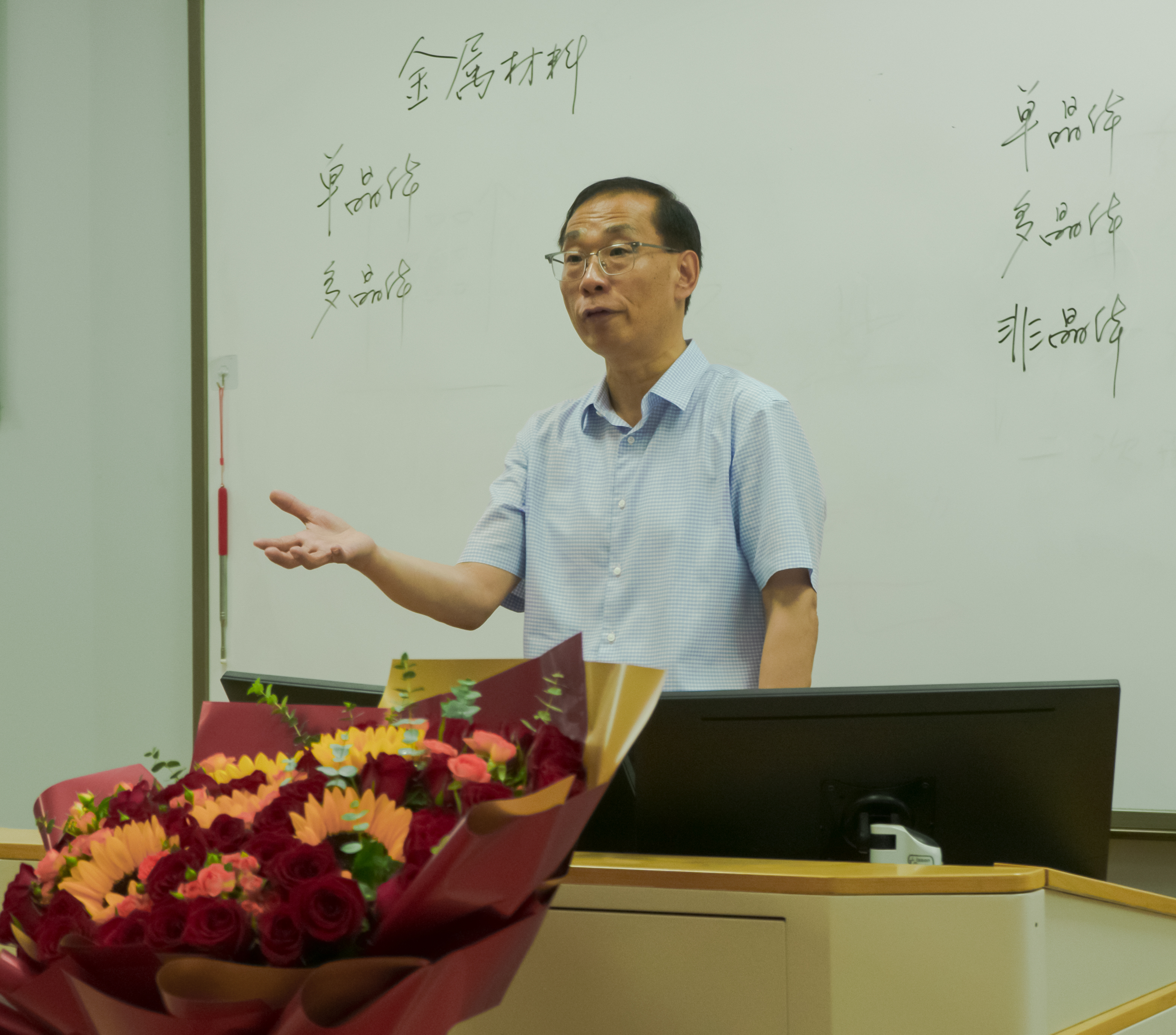 流金岁月,感恩有您。2023年6月20日上午12点将军路校区5402教室里,材料学院为即将荣休的陶杰教授举办了“最后一课”活动。学院党委书记石勇、院长顾冬冬、副书记庄晓舒、副院长常树全、副院长申来法及学院教师代表出席。