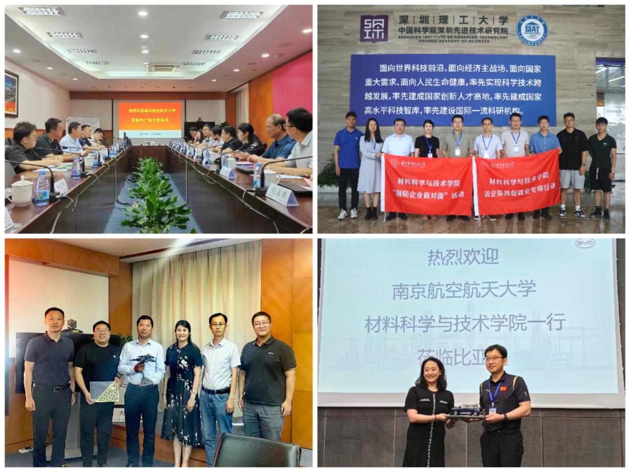 学院先后前往中广核集团研究院有限公司、工程有限公司、大亚湾核电运营公司、苏州热工研究院深圳分公司,比亚迪股份有限公司,中国科学院深圳先进技术研究院,哈尔滨工业大学(深圳)访企拓岗、调研交流。中广核集团人力资源部人事处处长唐朝波、苏州热工研究院人力资源部主任梅林,jojo漫画 97级校友、比亚迪总裁办接待中心总监杨蕾,哈工大(深圳)材料科学与工程学院执行院长李明雨、党委书记徐成彦等热情接待了学院一行。