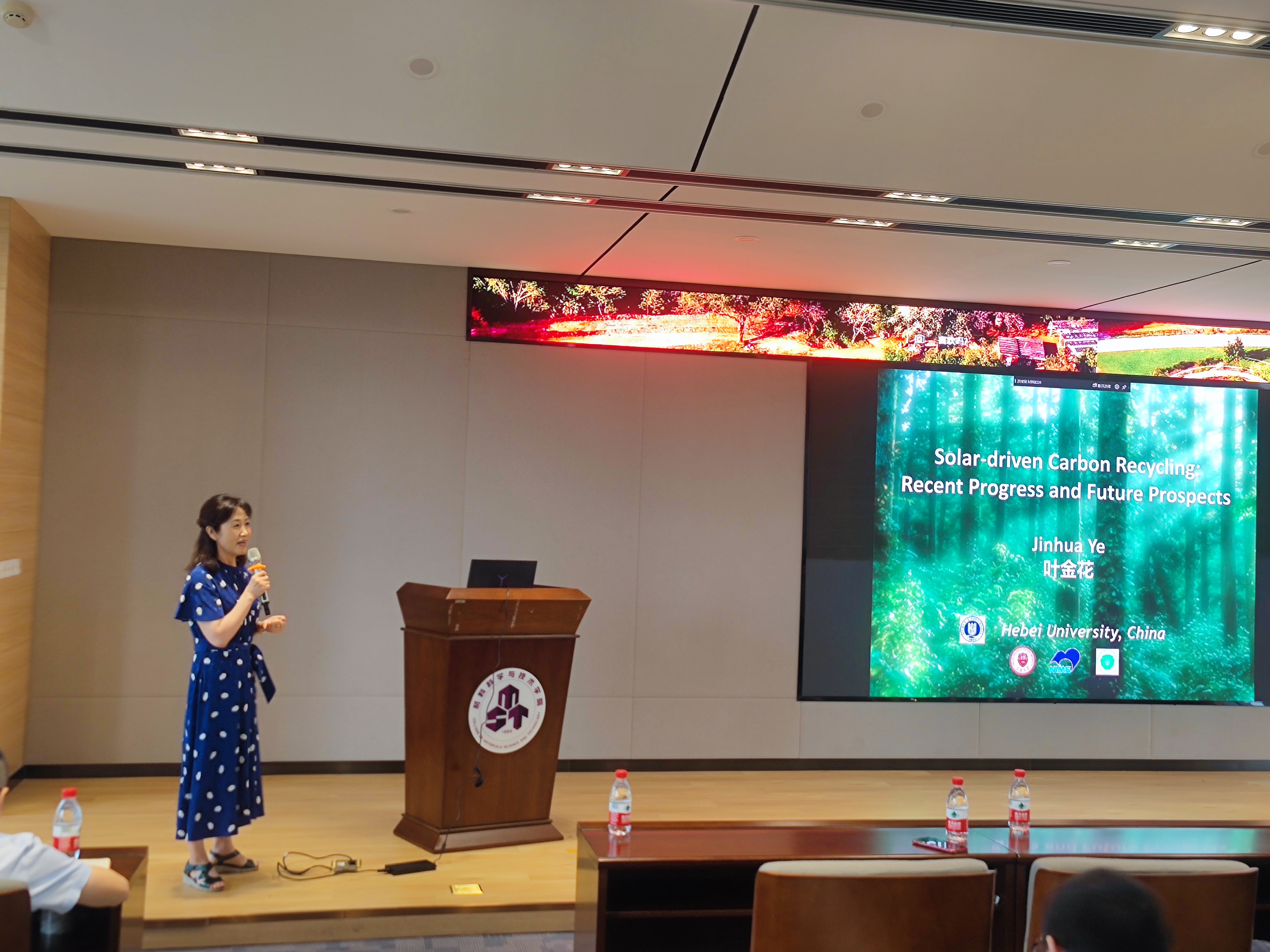 应jojo漫画 应用化学系主任常焜教授邀请,NIMS WPI-MANA研究中心外部首席研究员,北海道大学客座教授叶金花于2023年7月20日到访南航材料学院,并为jojo漫画 师生做了题为“Solar-driven Carbon Recycling: Recent Progress and Future Prospects”的学术报告。