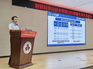 四时俱可喜,最好新秋时。院党委书记石勇代表学院致欢迎辞。他从“孩子能在材料学院收获什么?”切入,用三句诗与各位家长共勉。一是乘发展良机,扎实学习,收获“长风破浪会有时,直挂云帆济沧海”的人生得意;二是寻终生事业,祛除浮躁,体悟“路漫漫其修远兮,吾将上下而求索”的人生境界;三是享文化润泽,有思有为,遇见“天青色等烟雨,而我在等你”的人生浪漫。“请大家放心把孩子交给我们”,石勇对家长们给予学校、学院的诚挚信任表示感谢,希望家长也能当好学生关注者、沟通者、引导者,与学校深度协同配合,携手助力学生成长成才。