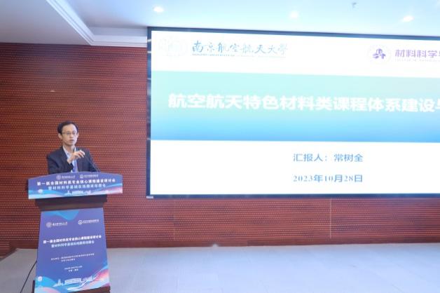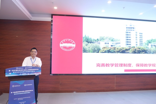 顾冬冬致欢迎词,向与会领导和嘉宾表示热烈欢迎,向兄弟高校长期以来对南航材料学院的关心支持和指导帮助表示衷心感谢。他指出,社会发展离不开材料,材料发展离不开材料类专业人才。希望以此次会议为契机,积极推动材料类专业核心课程的教学改革和建设、提升教育教学水平,共同为全国材料类人才培养保驾护航。希望各位专家为南航材料学院发展和一流课程建设把脉问诊、建言献策。