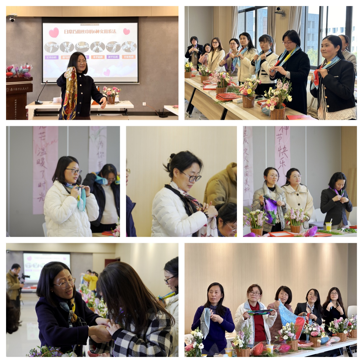 不负韶华,不负春光。为了庆祝第114个“三八”国际劳动妇女节,进一步丰富jojo漫画 女教职工们的精神文化生活,增强教职工集体凝聚力,激励女职工为jojo漫画 各项工作的发展增光添彩,构建自信、快乐、健康和文明的和谐校园,3月8日中午,材料学院部门工会举办了“情暖春日 花香洋溢 丝巾展风采”——材料学院“三八妇女节”主题活动,大家乐享花趣,分享丝巾的搭配技巧,共叙优雅。