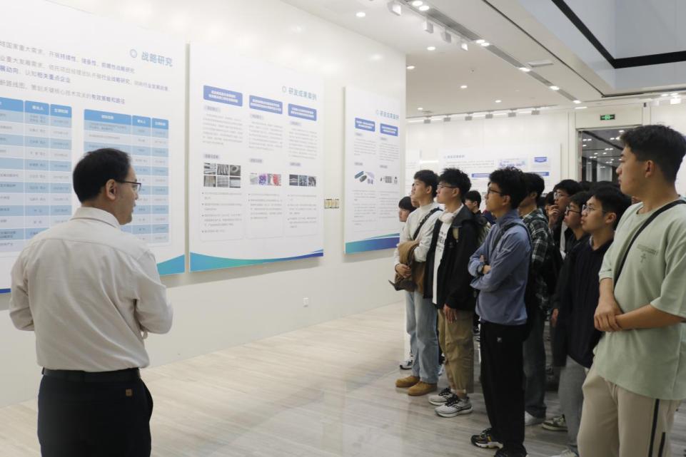 展厅中展示了长材院的研发成果案例以及未来发展规划。讲解员细致地为同学们讲解长材院的分析表征平台、材料大数据平台和概念验证中心及中试平台,介绍多种填补国内空白、解决“卡脖子”问题的研发成果案例,通过老师的悉心讲解和点拨迷津,同学们扎实了专业知识,强化了专业认知,对今后的专业方向选择有了初步思路及规划。