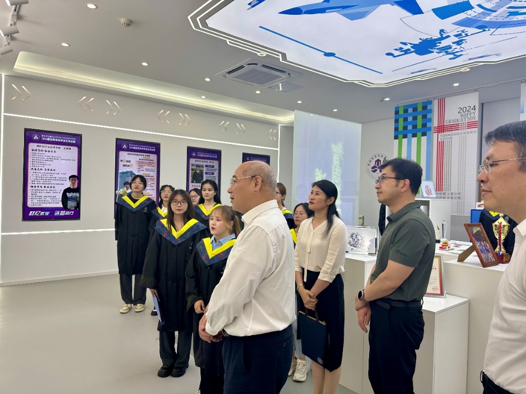 2024年6月21日,副校长黄志球参加联系班级0620501班毕业展。院党委书记石勇、院长顾冬冬、院党委副书记庄晓舒、副院长常树全、申来法参加此次活动。