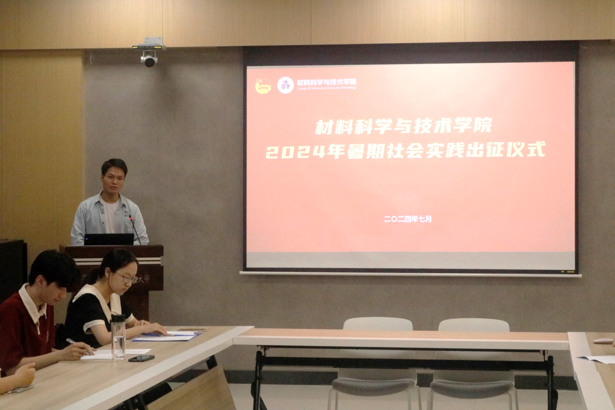 为深入贯彻习近平新时代中国特色社会主义思想和党的二十大精神,引导材料学子在社会实践中受教育、长才干、做贡献,7月5日晚,材料学院举行2024年暑期社会实践出征仪式。院团委书记徐萍、本科各年级辅导员、各社会实践团队的队长和宣传员同学参与本次活动。活动由2022级本科生辅导员倪永谦主持。