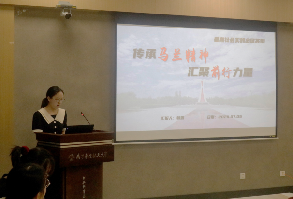 实践分享环节,“马兰英魂,时代担当”团队队长韩璐、“江韵悠长,文化VR传承舫”团队队长黄河浪为同学们进行了实践成果展示和经验分享。他们结合自身的实践经验,以自己所负责的社会实践为例,详细介绍了实践活动中的具体做法和社会实践的注意的事项,为同学们上了一节精彩生动的实践分享课。