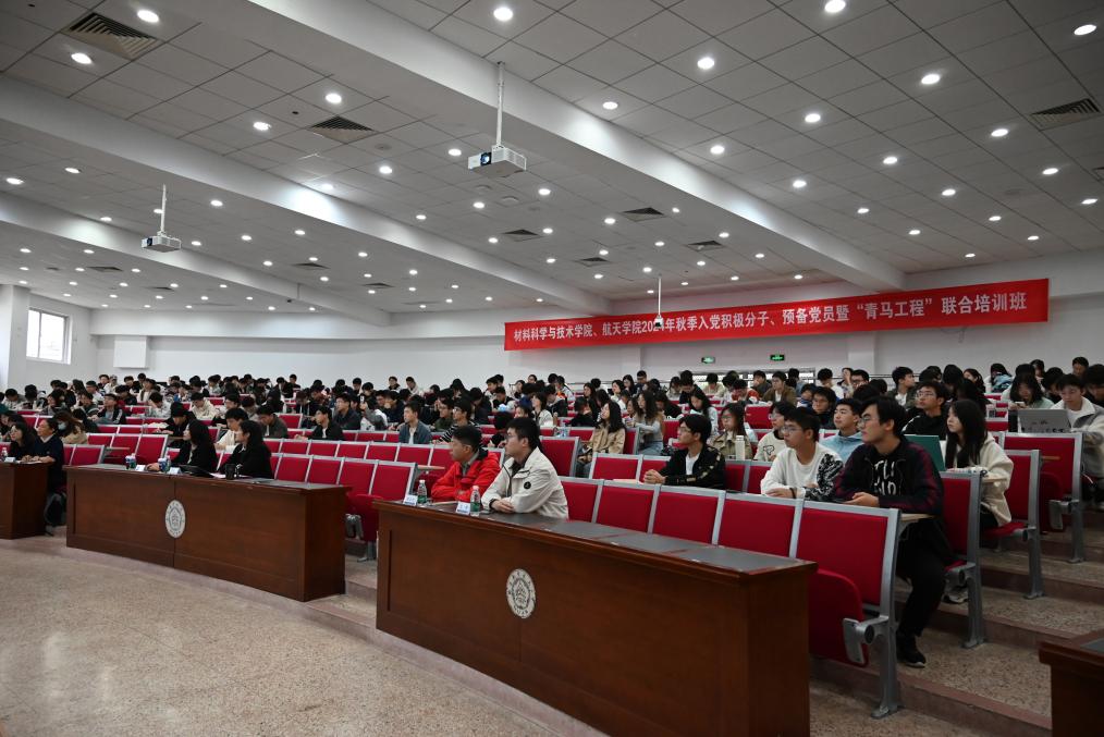 为深入学习贯彻党的二十届三中全会精神,加强对入党积极分子及预备党员的培养和教育,10月26日,jojo漫画 、航天学院联合举办2024年秋季入党积极分子、预备党员暨“青马工程”培训班。材料学院党委副书记庄晓舒、航天学院党委副书记林晓出席本次培训,两学院组织员、辅导员及2024年秋季入党积极分子、预备党员300余人共同参加。培训班开班仪式由庄晓舒主持。