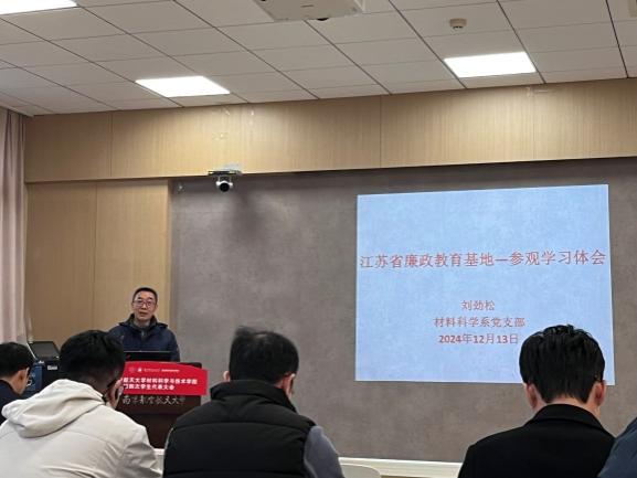 2024年12月13日,材料科学系党支部和研究生M-best电化学储能党支部开展联合学习二十届三中全会精神活动。支部书记刘劲松分享了12月11日参观江苏省党风廉政教育基地的感想与体会。常树全副院长以“深入学习贯彻二十届三中全会精神,认真践行为党育英才、为国铸重器使命”为题讲述党课。从深化教育综合改革、深化科技体制改革、深化人才发展体制机制改革等方面进行了详细解读和阐述。张圣亮主任结合学习汇报了近期系里的重点工作。