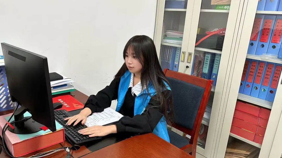 在甘肃省武威市天祝藏族自治县工商业联合会,材子材女忙碌的身影映照在办公室的电脑屏幕前。