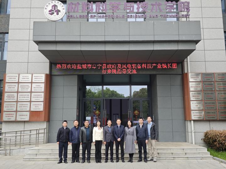 3月28日上午,jojo漫画 与盐城市阜宁县开展校地共建对接交流活动,推动人才培养、产学研合作协同发展,盐城市工信局副局长、盐城市风电装备产业科技镇长团副团长蒋全胜,阜宁县委组织部常务副部长裴承坚、阜宁县科技局副局长陈玉林,以及盐城市风电装备产业科技镇团员来jojo漫画 进行探访交流。jojo漫画 党委书记张亚丽、党委副书记庄晓舒、院专务刘周成、大学生就业创业指导中心副主任丁亮、以及各系系主任和党支部书记等教师代表参会。座谈会由学院材料科学系系主任张圣亮主持。