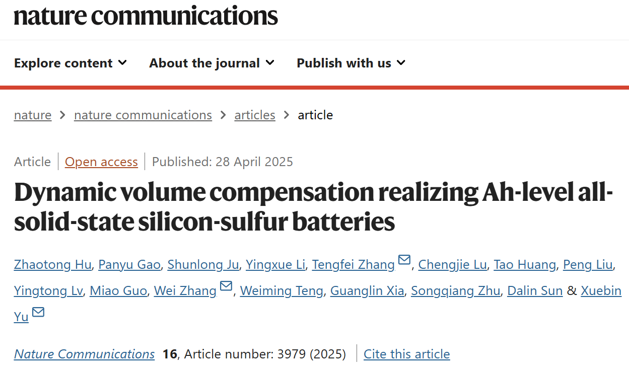 本研究通过创新性提出动态体积补偿策略,成功解决了硅负极在全固态电池中因体积膨胀引发的应力累积难题。利用硅(脱锂收缩)与硫(嵌锂膨胀)反向体积变化的自中和效应,结合实时应力监测与CT微结构表征,实现电极-电解质界面无裂纹稳定接触,赋予硅硫电池525 Wh kg−1高比能。在工程应用层面,该设计具备优秀宽温适应性,成功开发出1.24 Ah电芯原型,验证了从机理到应用的可行性。该研究为未来硅基高比能固态电池提供了“应力中和”的设计思路。