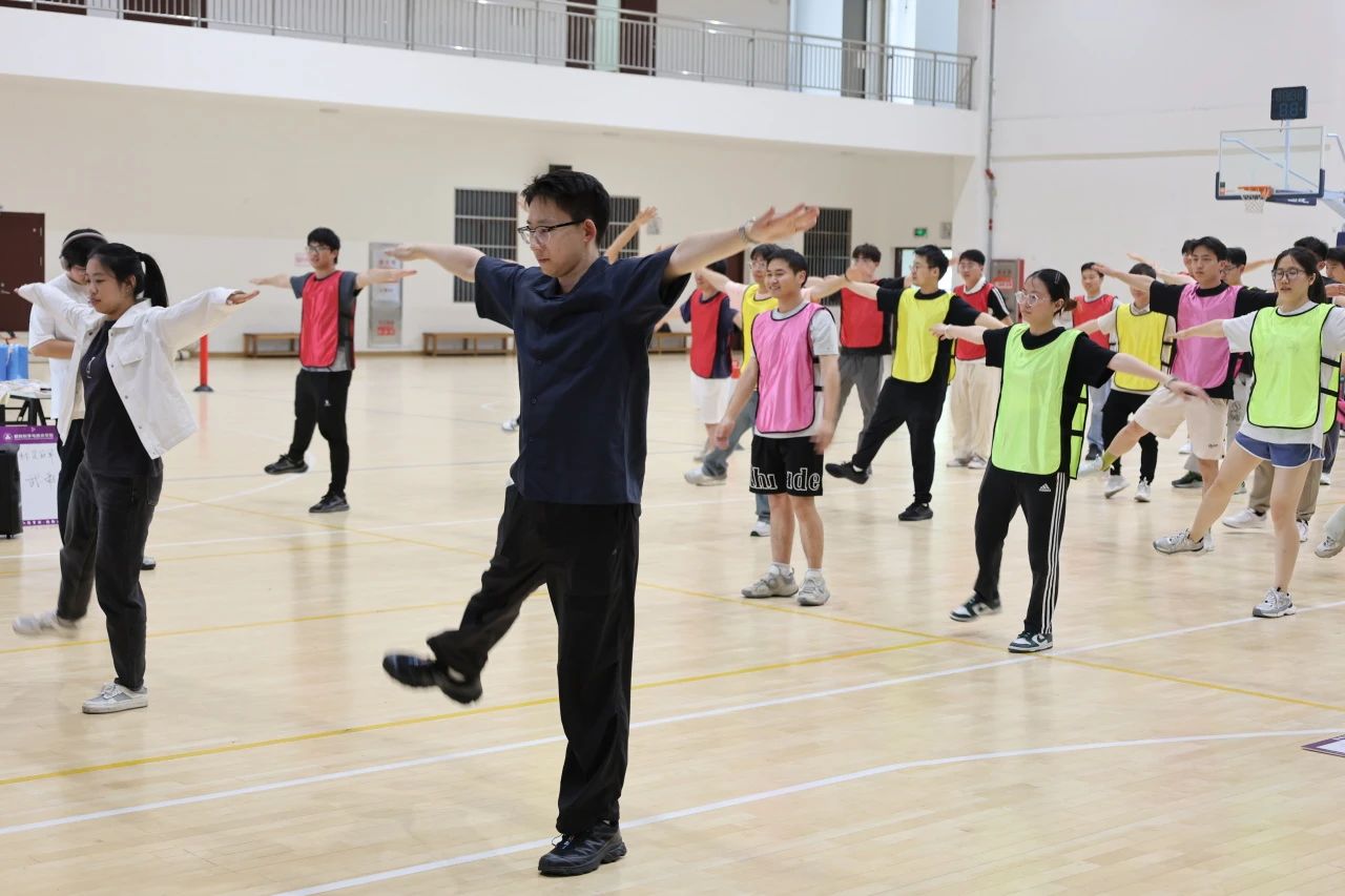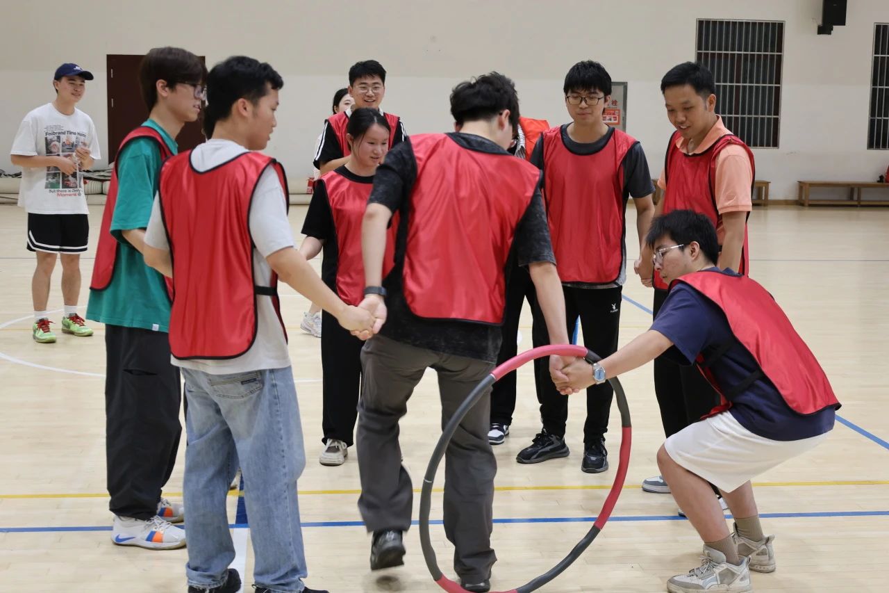 “环环相扣,守望相助”项目中,师生们手拉手围成的圆圈内,呼啦圈被迅速传递。伴随着抬手、下蹲等动作,参与者姿态虽不尽相同,却共同营造出赛场之上浓厚的欢乐氛围。