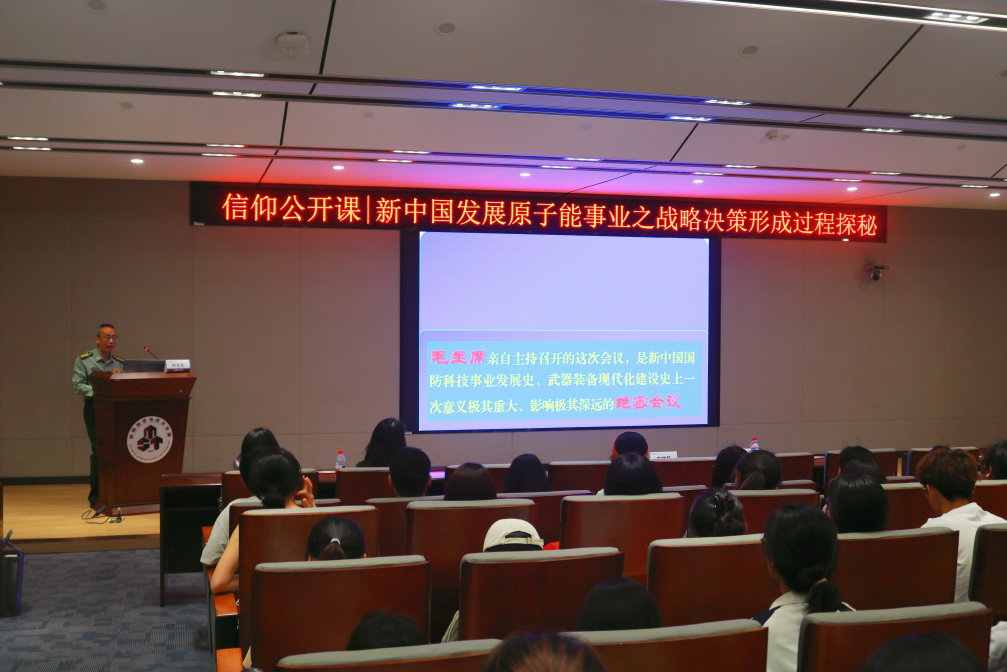 5月21日,由jojo漫画 团委主办、jojo漫画 团委承办的“新中国发展原子能事业之战略决策形成过程探秘”信仰公开课在材料学院报告厅举行。本次信仰公开课邀请中国人民解放军某部研究员,专业技术大校时文生主讲,材料学院党委副书记庄晓舒、学院辅导员、100余名学生参与。讲座由庄晓舒主持。