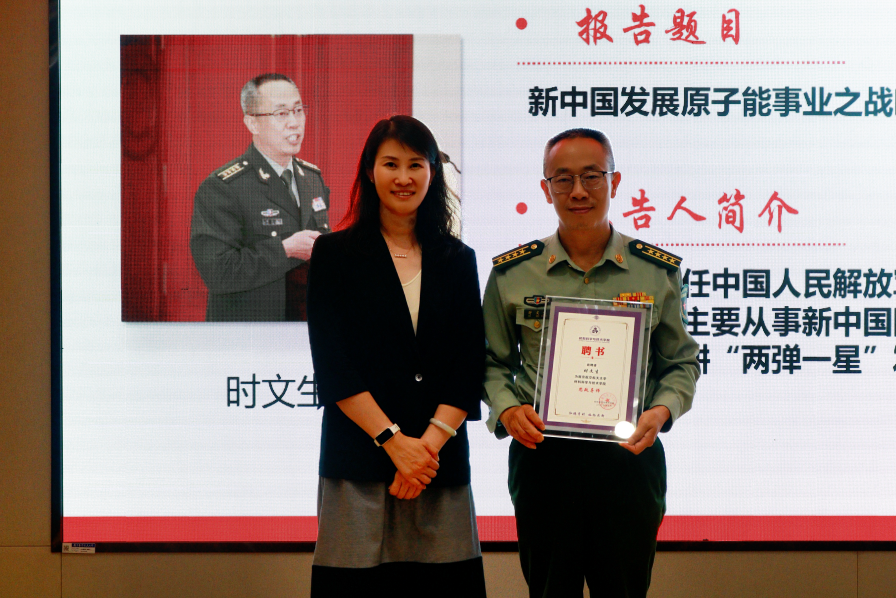 时文生主要从事新中国国防科技和武器装备史研究,深耕“两弹一星”发展史领域。课前,庄晓舒为时文生颁发“jojo漫画 思政导师”聘书。