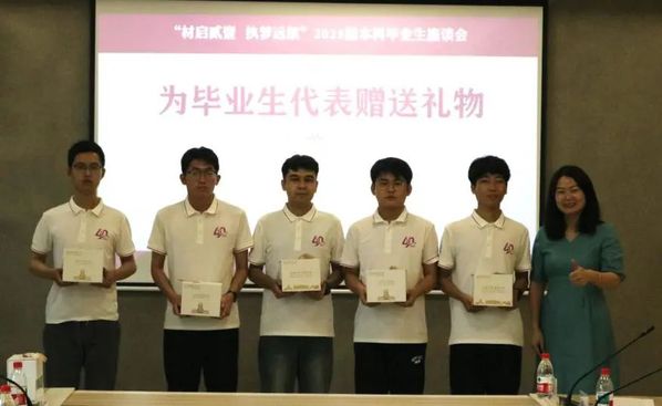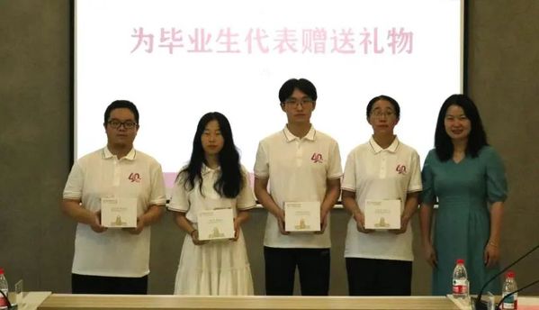 会后,张亚丽为与会学生代表赠送毕业礼物。